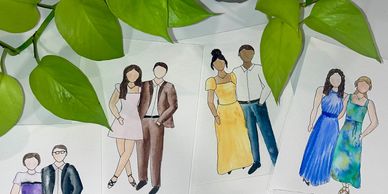 Live fashion illustrations of your favorite people. A perfect wedding favor.